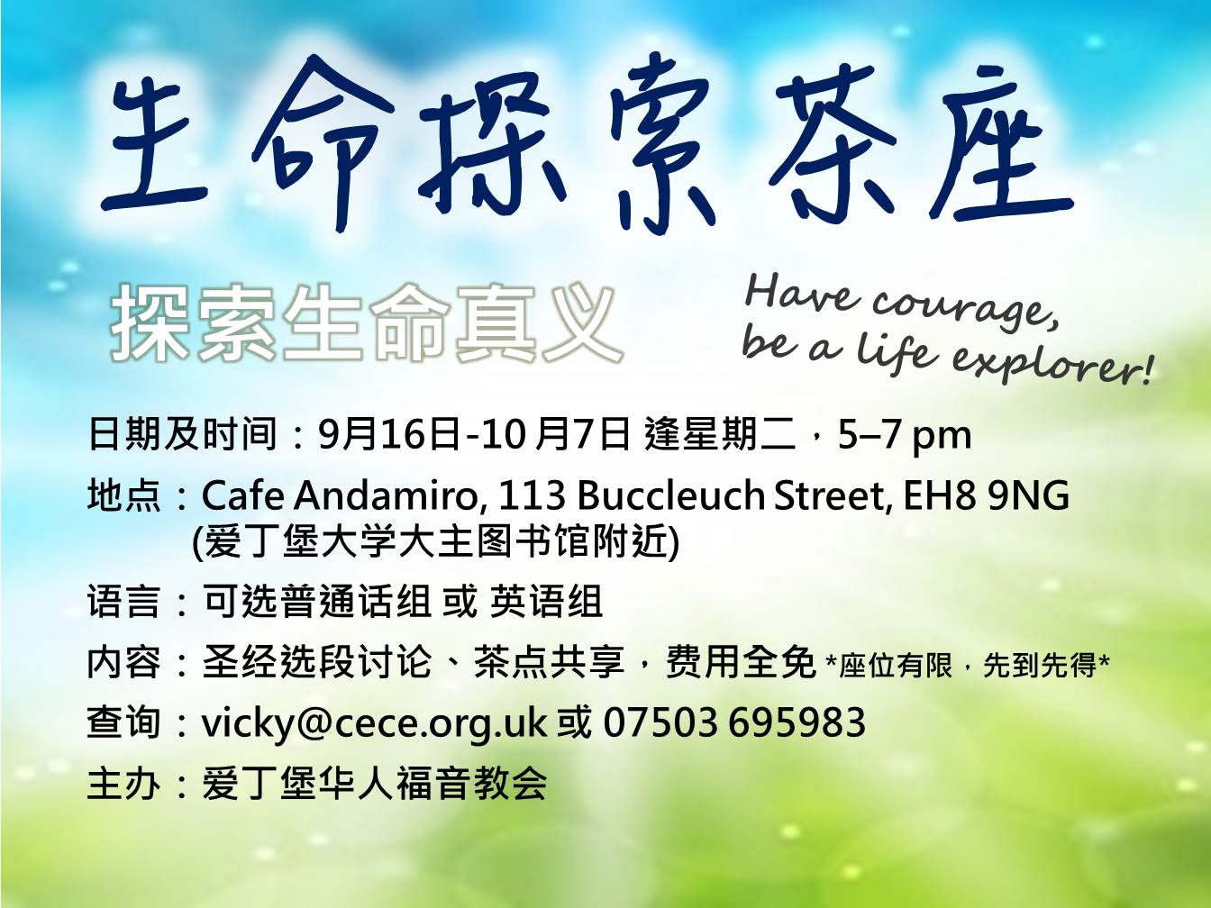 生命探索茶座-探索生命真義: ……討論聖經選段,共享茶點,費用全免。……